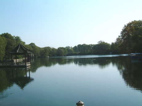 水面上的落叶,悠闲地舒展着,没有告别的忧伤,没有离别的愁绪;水中的浮萍,舒缓优美地沉浮着它的静寂,没有孤独,隐匿浮躁。在这一池的清静里浅唱低吟着离世的笙歌。此时,徐志摩的《再别康桥》那抒情的吟诵响起耳畔,那唯美的诗句,不正是这些流动的画面,优美的音符汇结成的这一潭清辉吟咏。